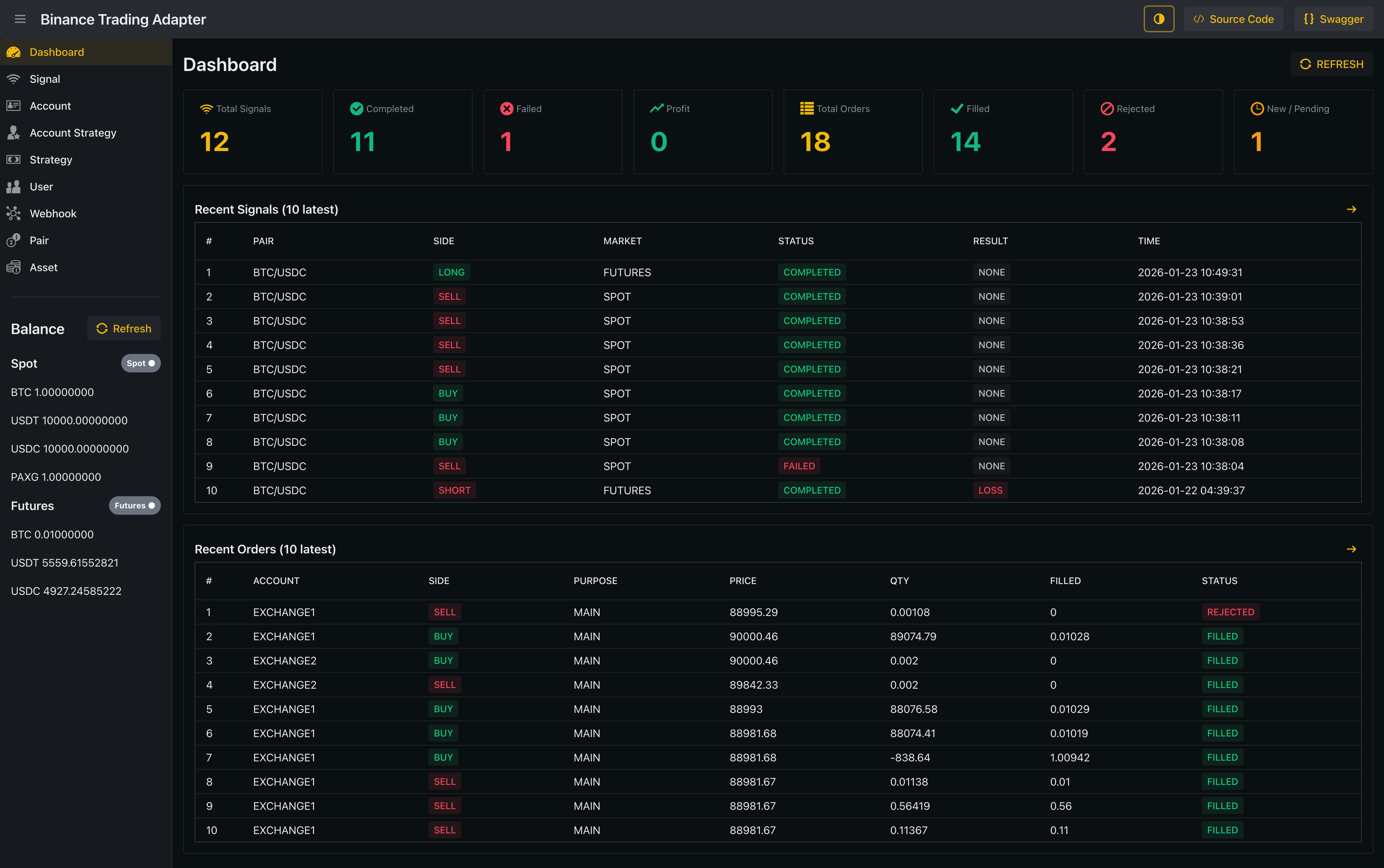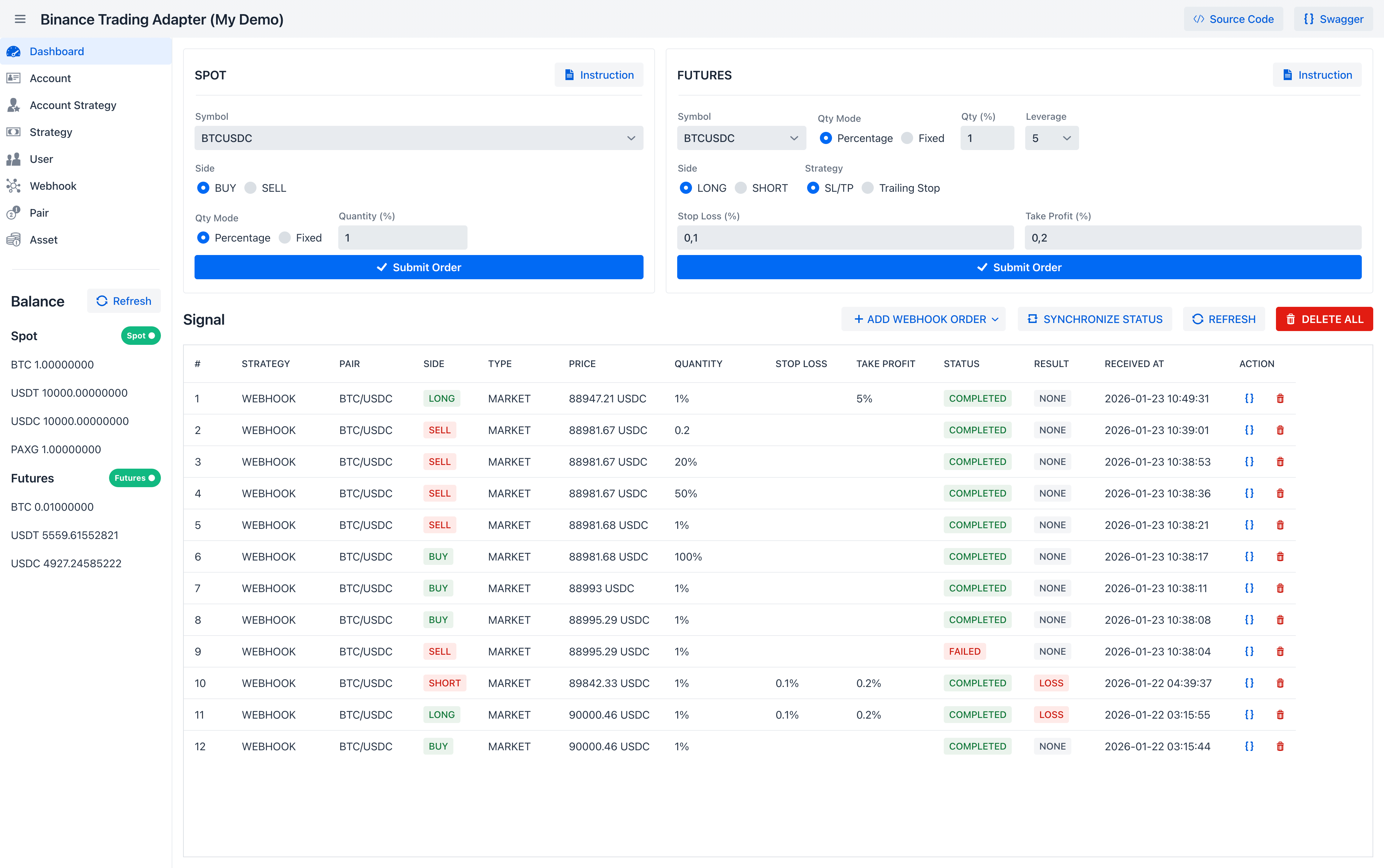 Binance Trading Adapter